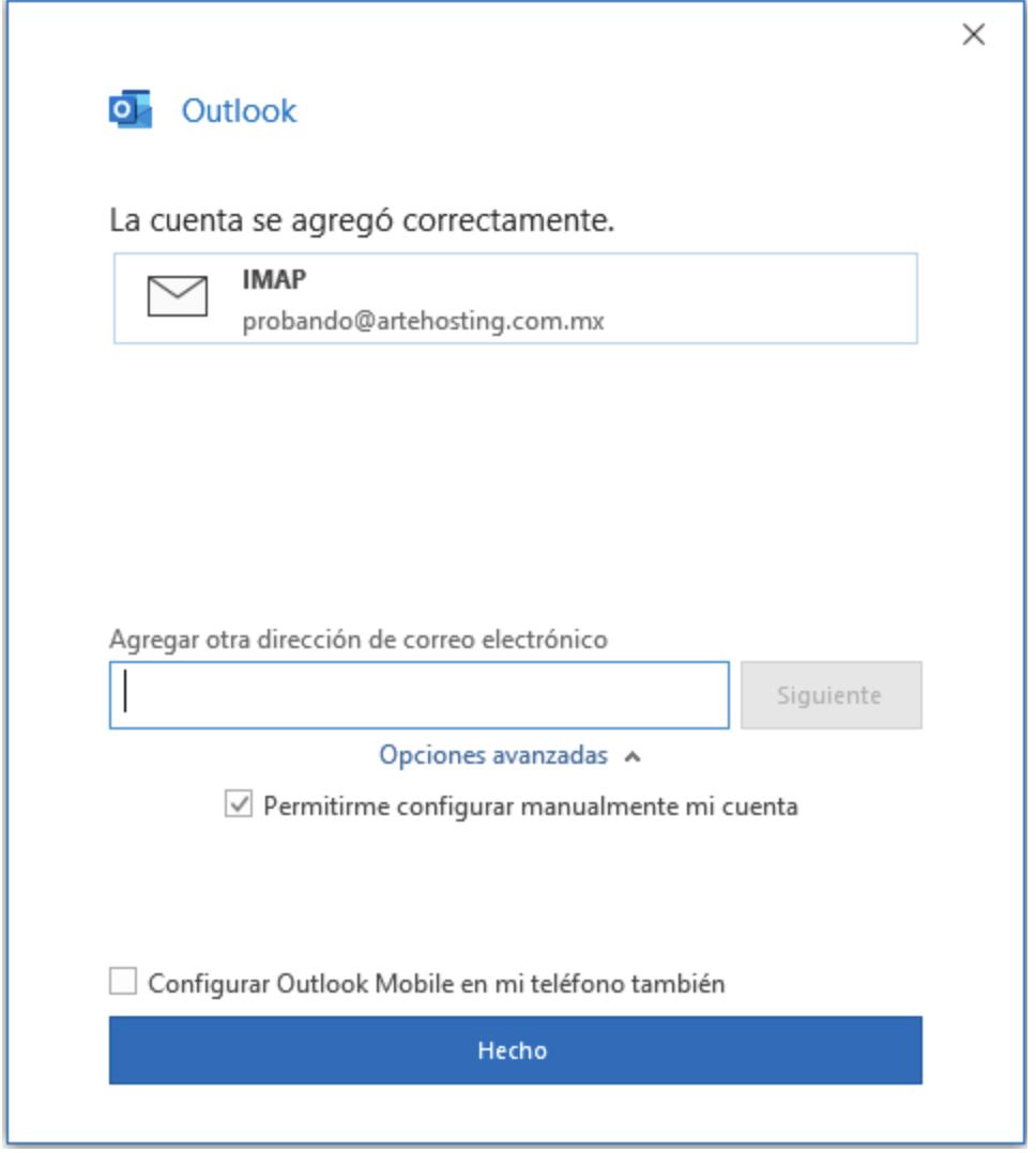 - Recibirás una confirmación de que la cuenta se ha configurado exitosamente.